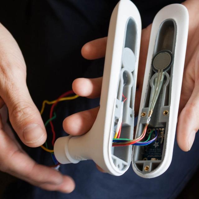 De deurkruk leest de hand van diegene die hem vastpakt maar geeft ook reactie door middel van trilling en licht.